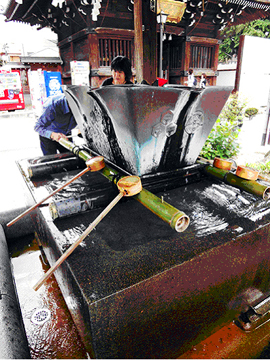 ทุกศาลเจ้าจะมีอ่างน้ำไว้ให้ล้างมือก่อนเข้าศาลเจ้า เพื่อความสะอาดบริสุทธิ์