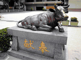 ศาลเจ้าไหนที่มีรูปปั้นวัวหน้าตาแบบนี้ ให้ลูบหัวและเขา เพราะเชื่อกันว่าเป็นการขอให้ฉลาด เรียนเก่ง